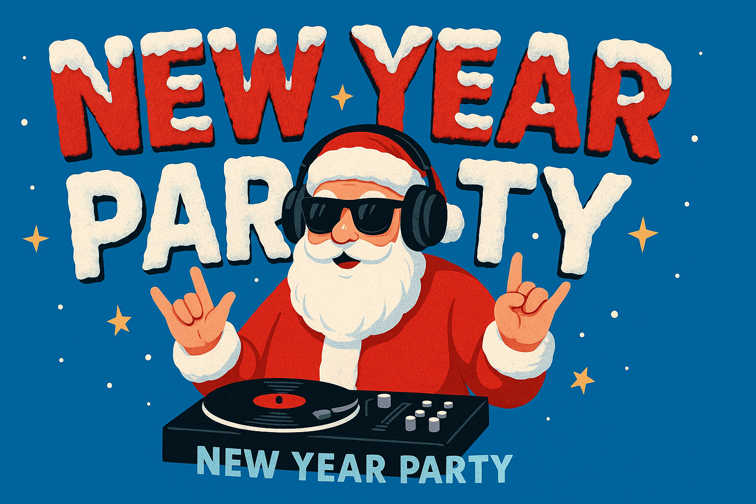 Festive New Year Party Graphic Featuring DJ Santa Claus