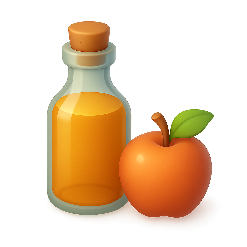 A vibrant 3D illustration of a cider bottle with a cork and a fresh apple beside it. The design features a transparent background and an isometric view, highlighting the volumetric feel.