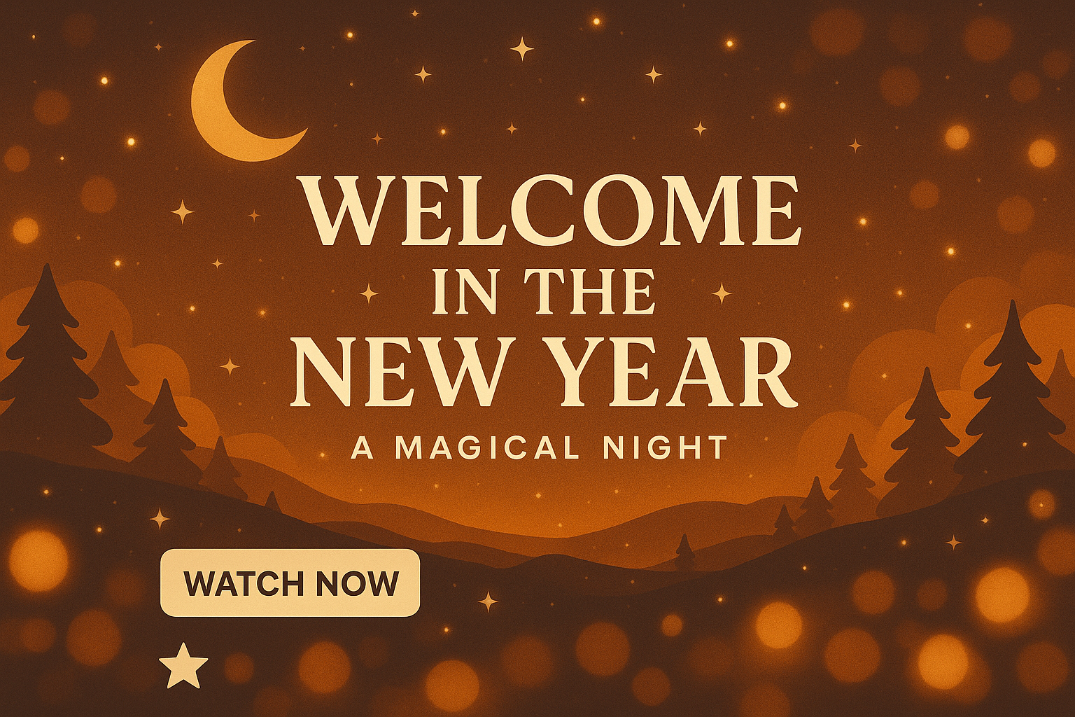 /Collection: /by davooda/Type: PNG/A visually captivating banner for New Year celebrations featuring a cozy night scene with trees and stars, ideal for social media promotions or event invitations.