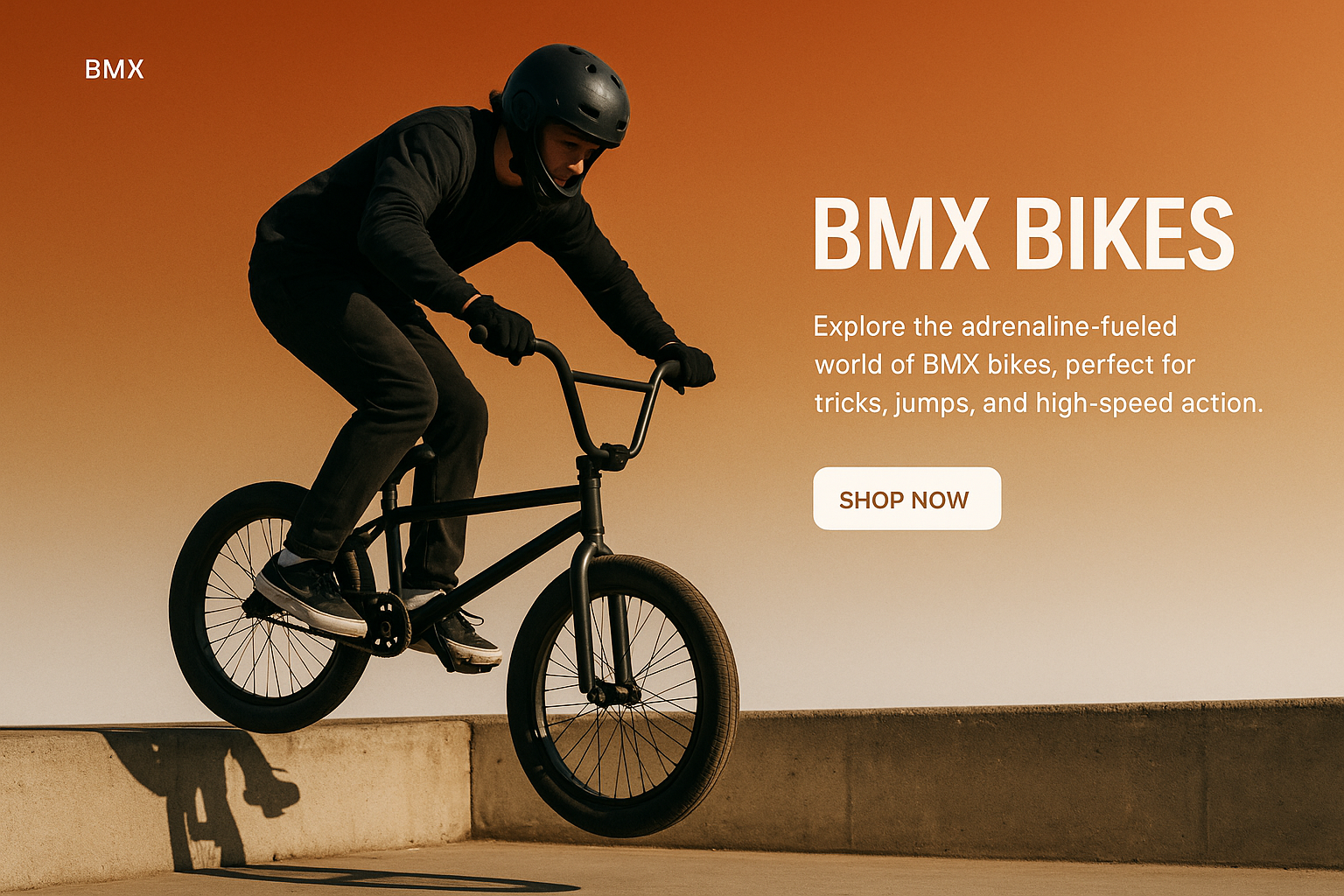 A visually striking BMX website layout featuring a rider performing tricks, with a gradient background and clear call to action button. The design emphasizes readability and style.