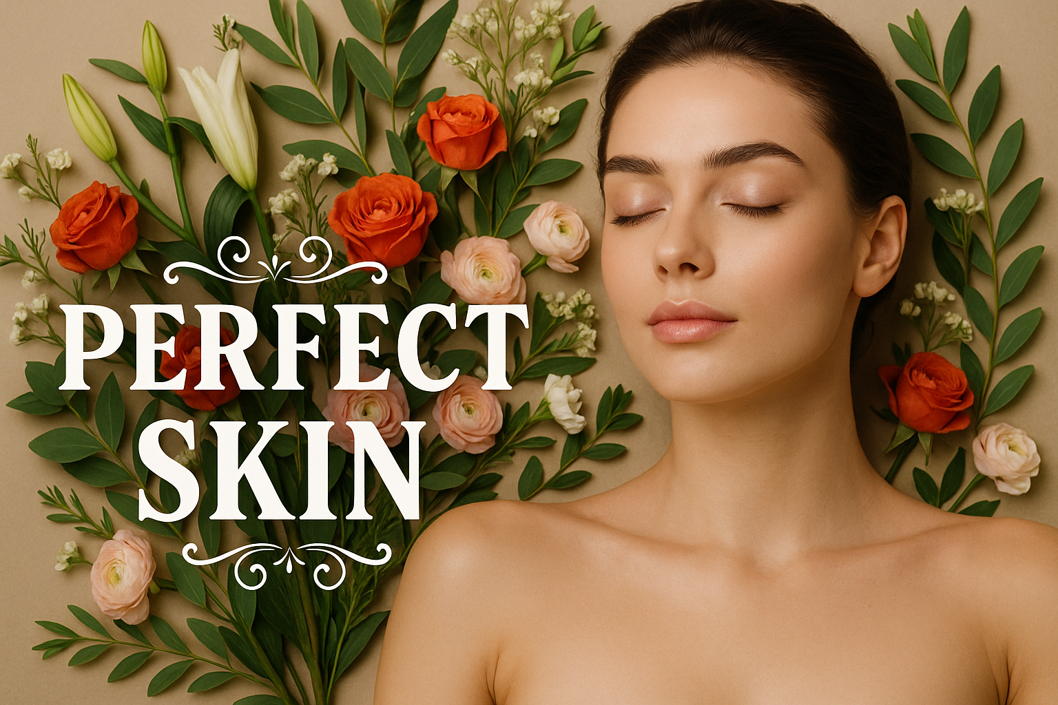 Beauty and Skincare Promotional Image Featuring Floral Elements
