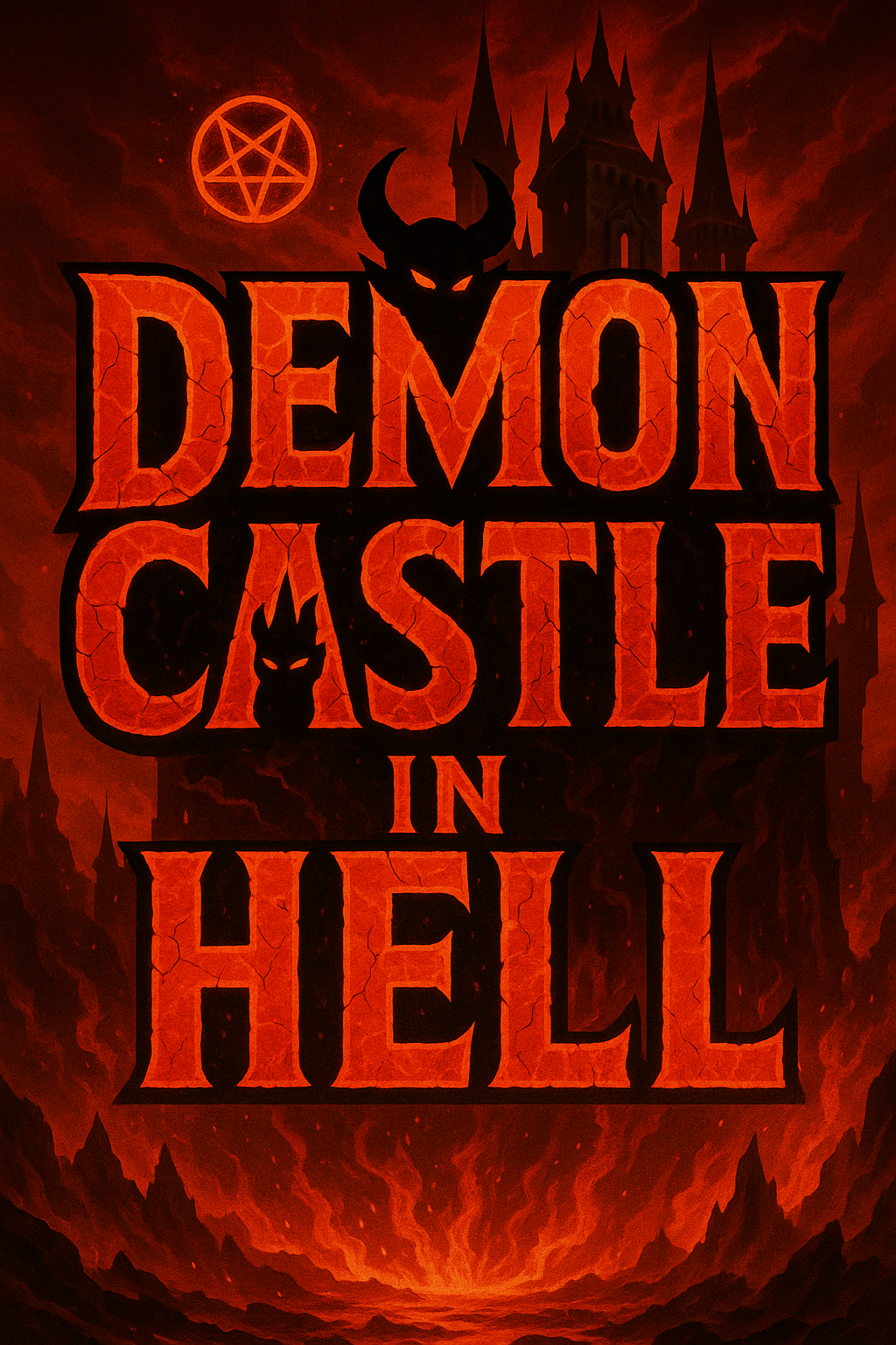 Striking dark fantasy illustration showcasing a demon castle set against a fiery hellish background, ideal for gaming or horror-themed projects.