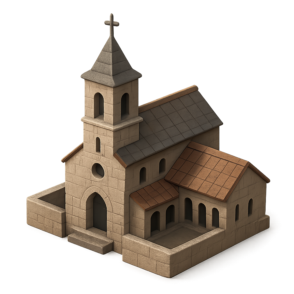 3D Monastery Icon with Isometric Perspective
