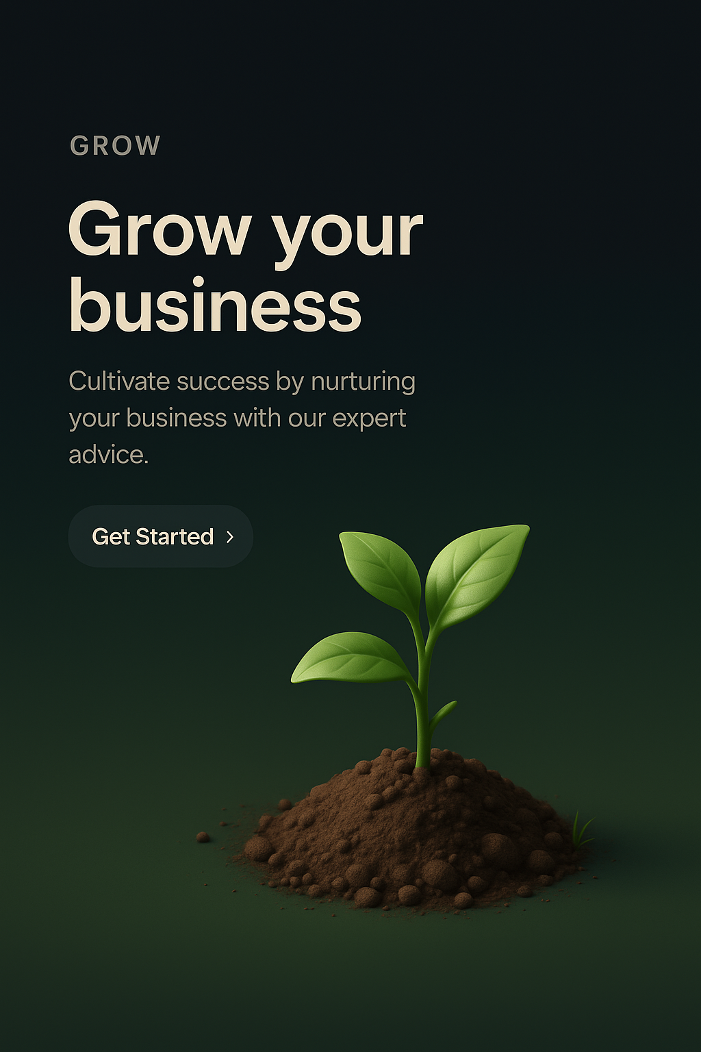 /Collection: /by davooda/Type: PNG/A visually captivating 3D scene showcasing a small plant emerging from soil, symbolizing growth. The dark gradient background enhances the vibrancy of the plant, which is complemented by a clean, modern text layout promoting business growth.