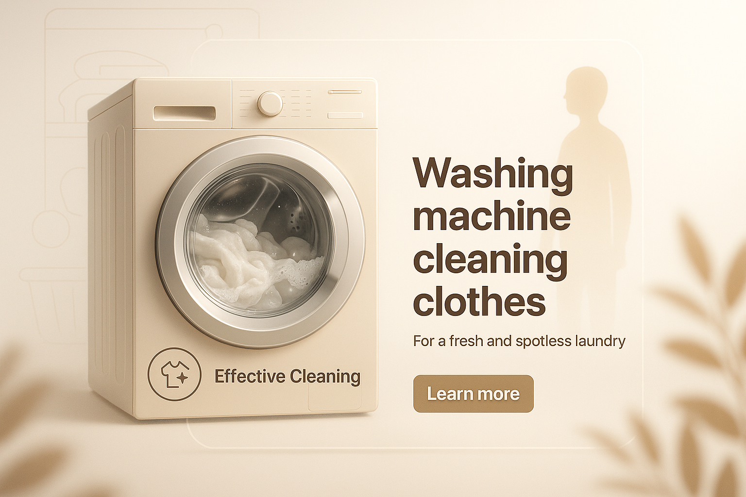 /Collection: /by davooda/Type: PNG/Modern promotional graphic showcasing a washing machine with a clean design, ideal for marketing laundry cleaning services. Features soft colors and a minimalistic layout.