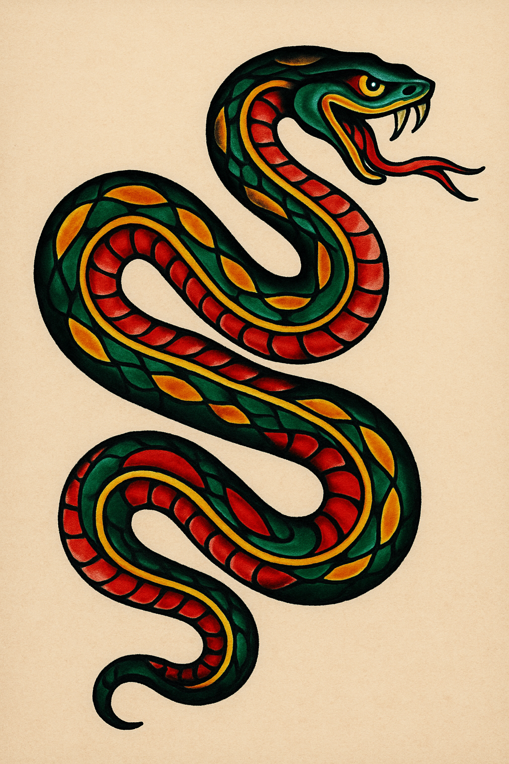 Colorful Snake Illustration with Bold Design Elements
