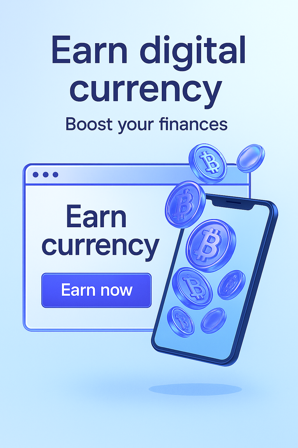 Promotional graphic highlighting digital currency with a modern smartphone design and floating coins. Ideal for financial services marketing.