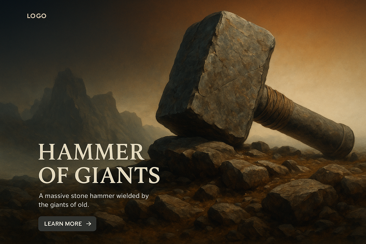 /Collection: /by davooda/Type: PNG/An impressive illustration of a massive stone hammer set against a dramatic landscape. The composition features a gradient background and a clear call-to-action button.