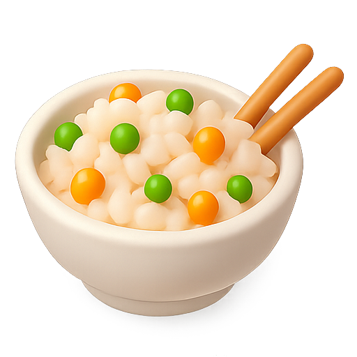 A vibrant illustration of a bowl filled with rice and colorful vegetables, ideal for food-related content or culinary promotions. The design features playful colors and a clean style.