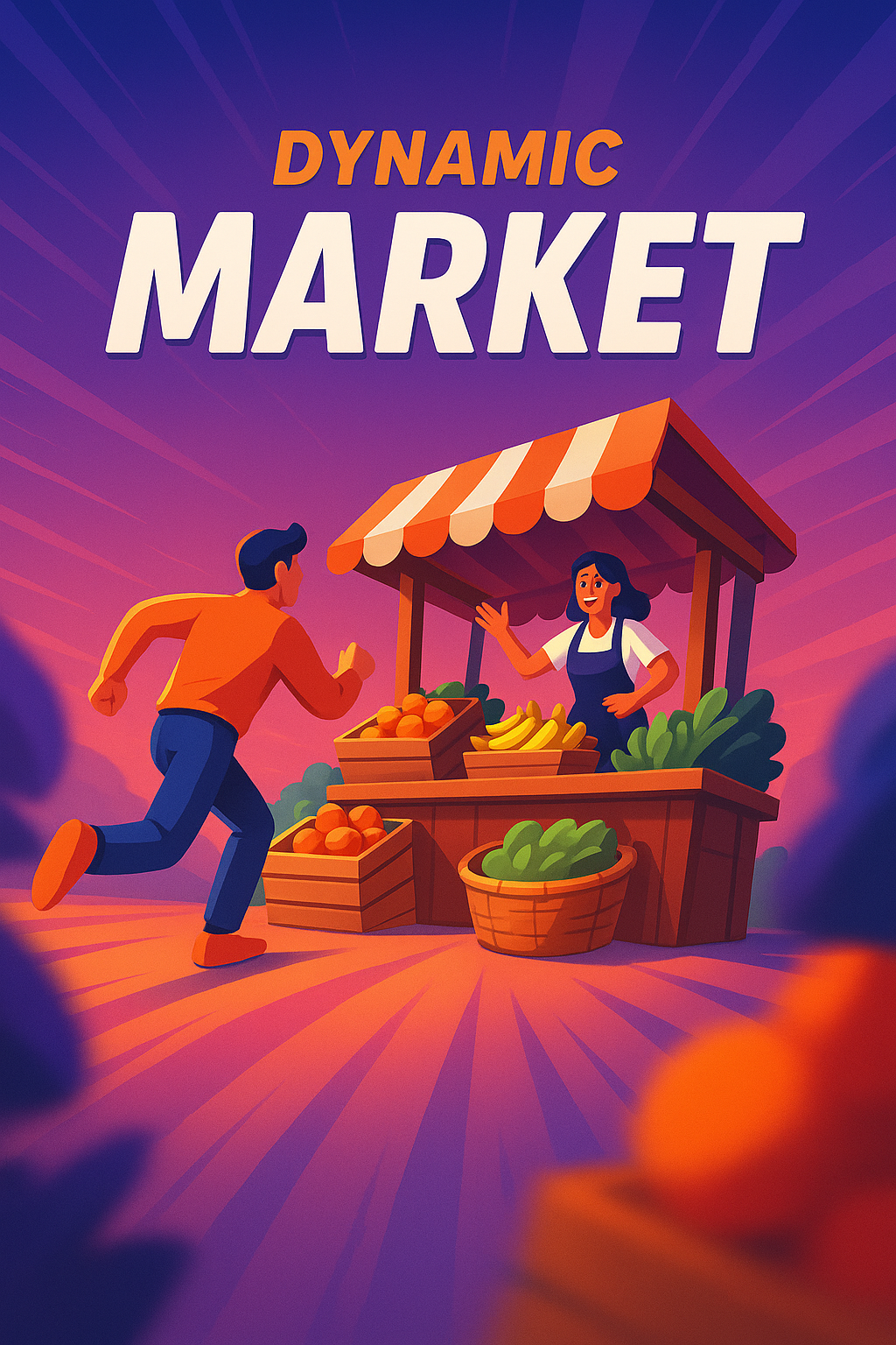 /Collection: /by davooda/Type: PNG/An energetic market illustration featuring a vendor and a customer, surrounded by vibrant fruits. The scene is lively, with dynamic lines radiating from the center for added depth.