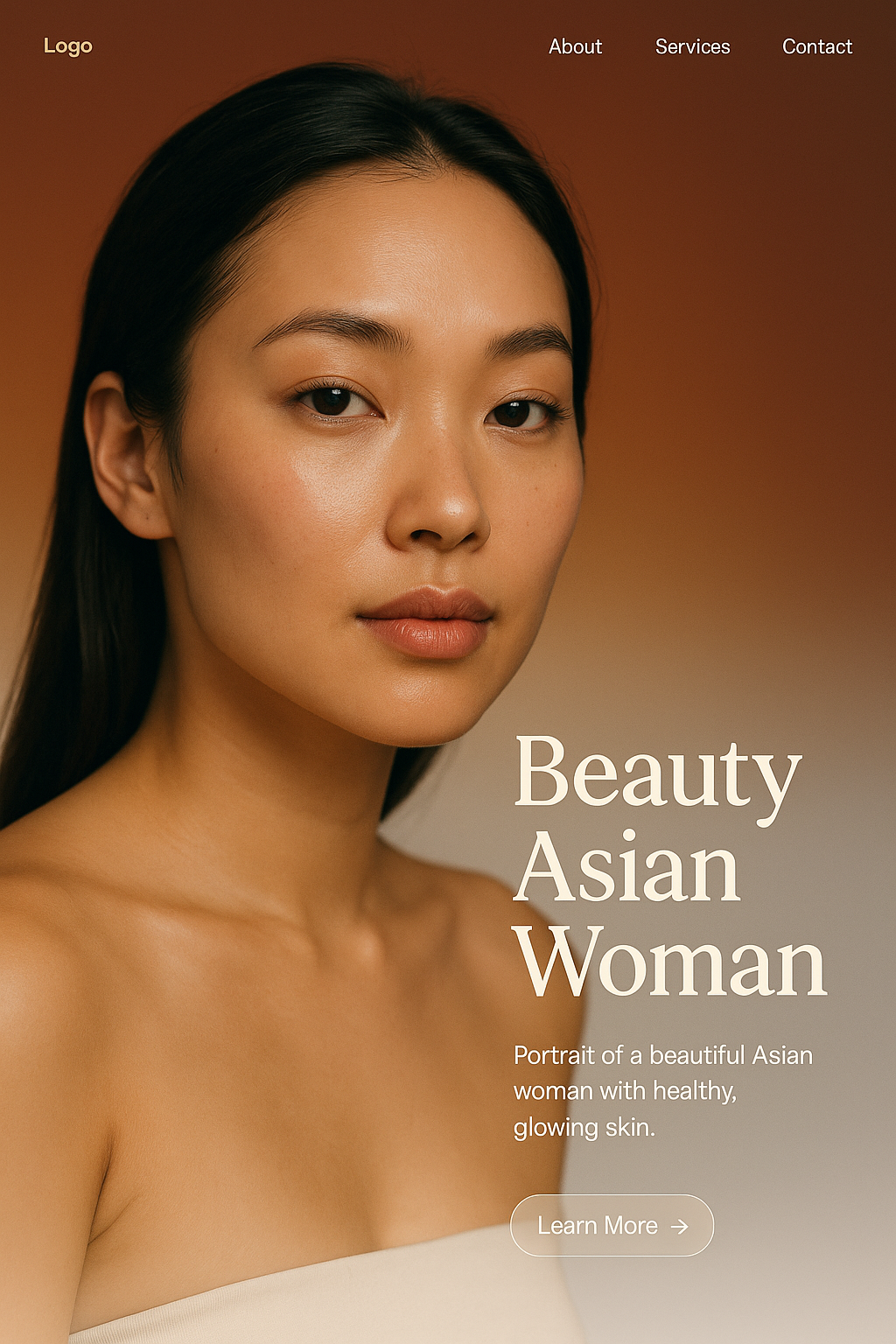 /Collection: /by davooda/Type: PNG/A stylish portrait of an Asian woman with radiant, healthy skin. The design features a minimalistic layout with a warm gradient background, emphasizing beauty and elegance.