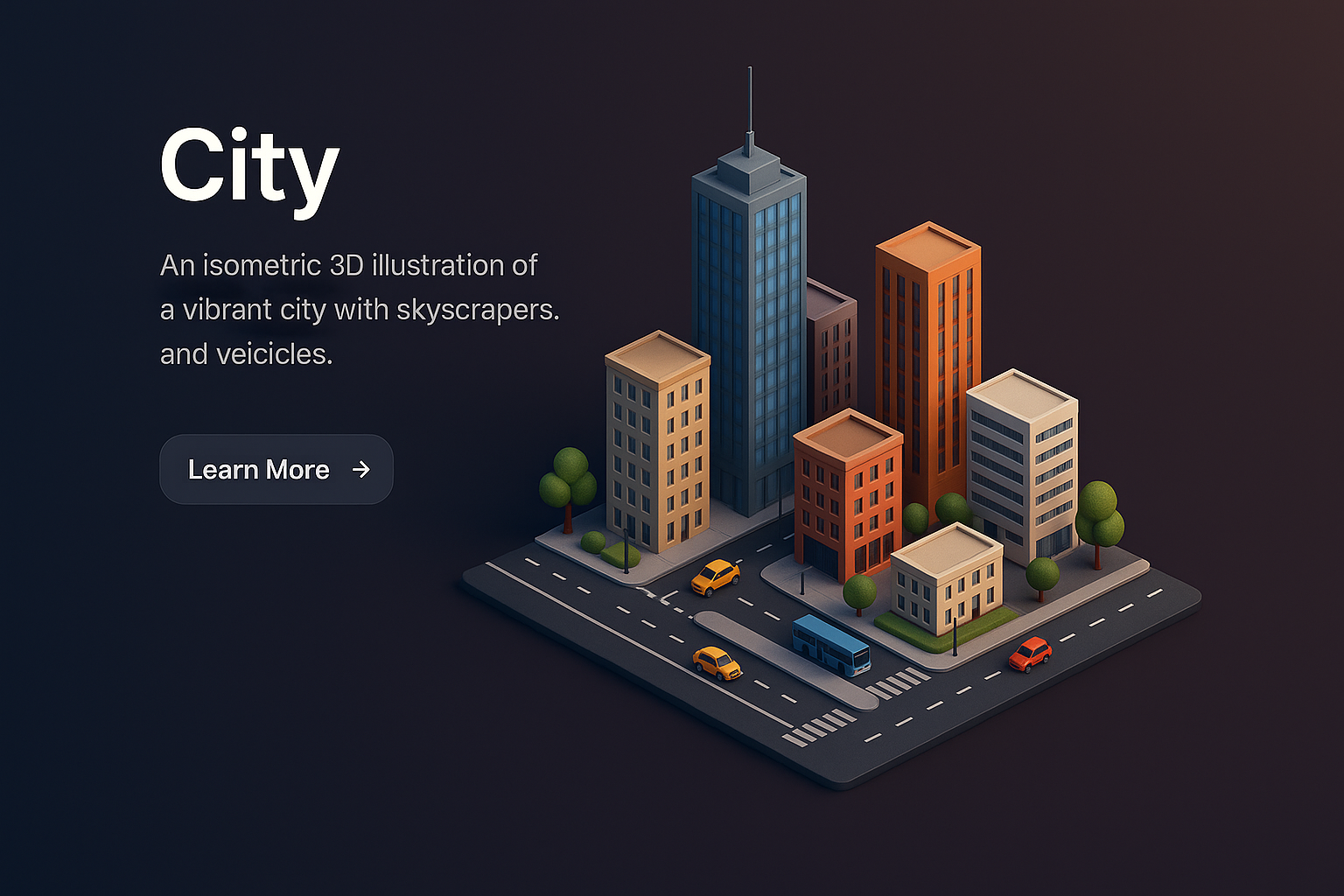 Isometric 3D City Scene with Skyscrapers and Vehicles