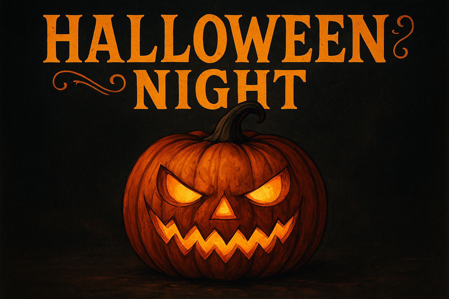Halloween Night Themed Graphic with Pumpkin Illustration