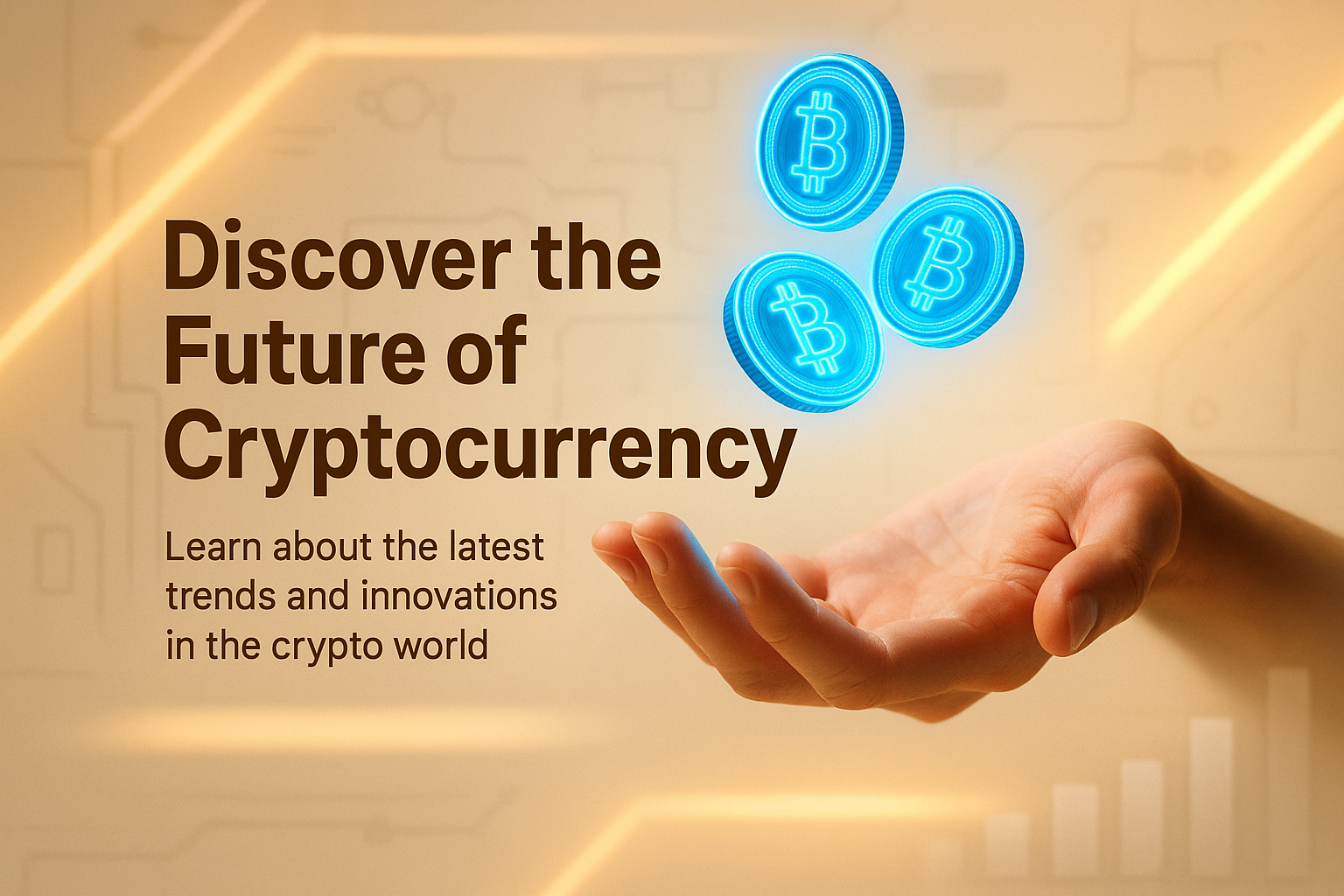 /Collection: /by davooda/Type: PNG/Engaging promotional graphic showcasing cryptocurrency trends with a hand holding digital coins, ideal for educational content on crypto innovations.