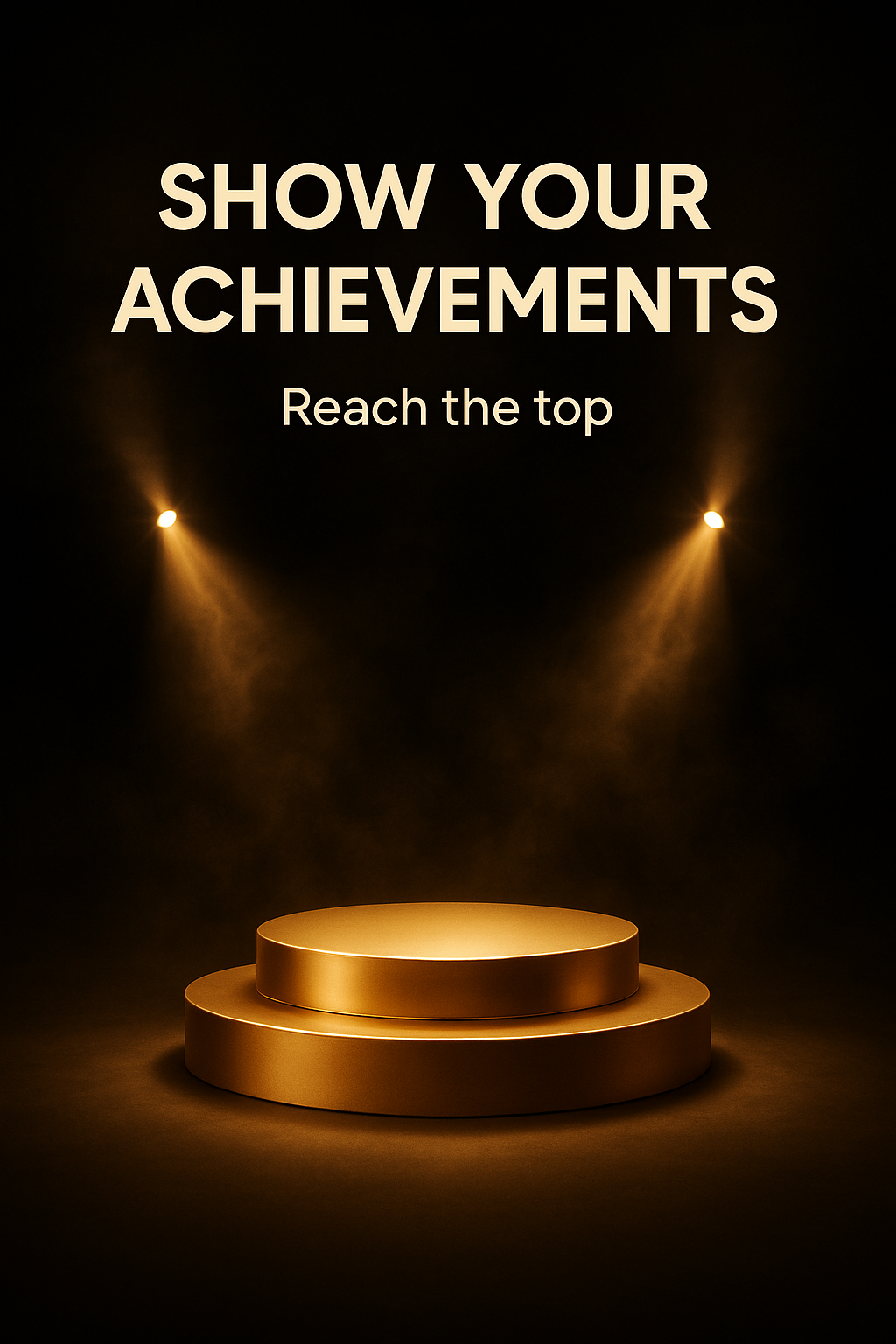 A visually striking promotional image depicting a golden podium illuminated by spotlights, ideal for motivational themes or award presentations.