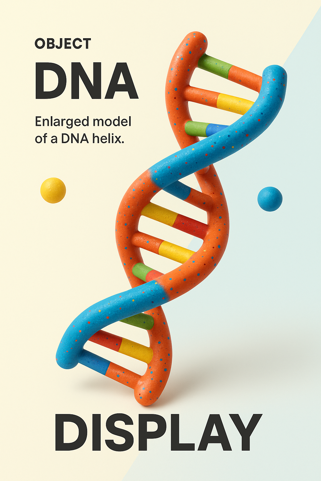 /Collection: /by davooda/Type: PNG/An enlarged, colorful DNA helix model prominently displayed against a clean, modern backdrop. The background features contrasting light color fields, enhancing the object's dynamism. Realistic lighting and shadows create depth.