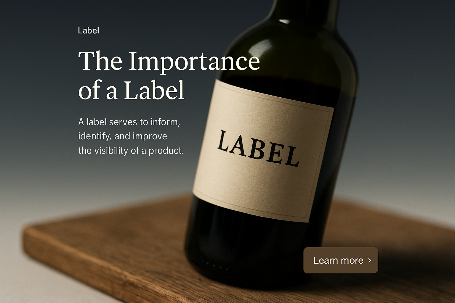 /Collection: /by davooda/Type: PNG/An elegant web design layout showcasing a wine bottle label. The gradient background enhances the focus on the label, with clear text and a call-to-action button.