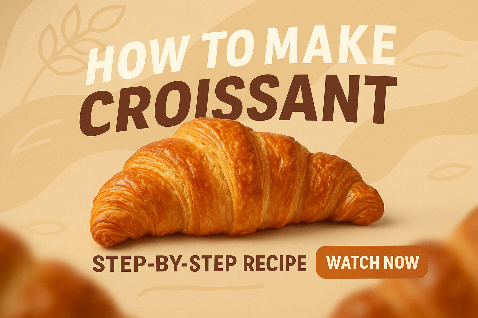 A visually appealing recipe graphic showcasing a croissant with step-by-step instructions. Ideal for food blogs and culinary social media posts.