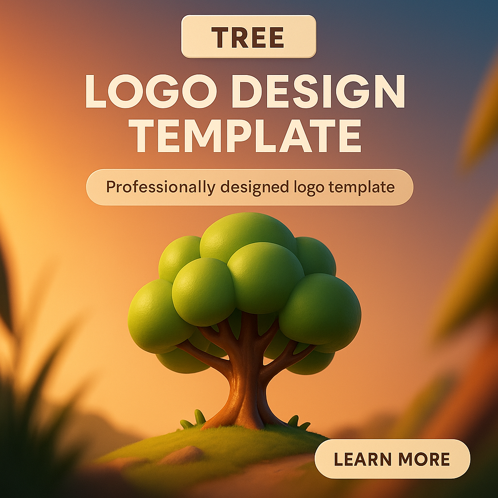 /Collection: /by davooda/Type: PNG/A visually appealing 3D logo design template showcasing a stylized tree, ideal for nature-themed branding. The warm gradient background enhances its professional look, making it suitable for marketing materials.