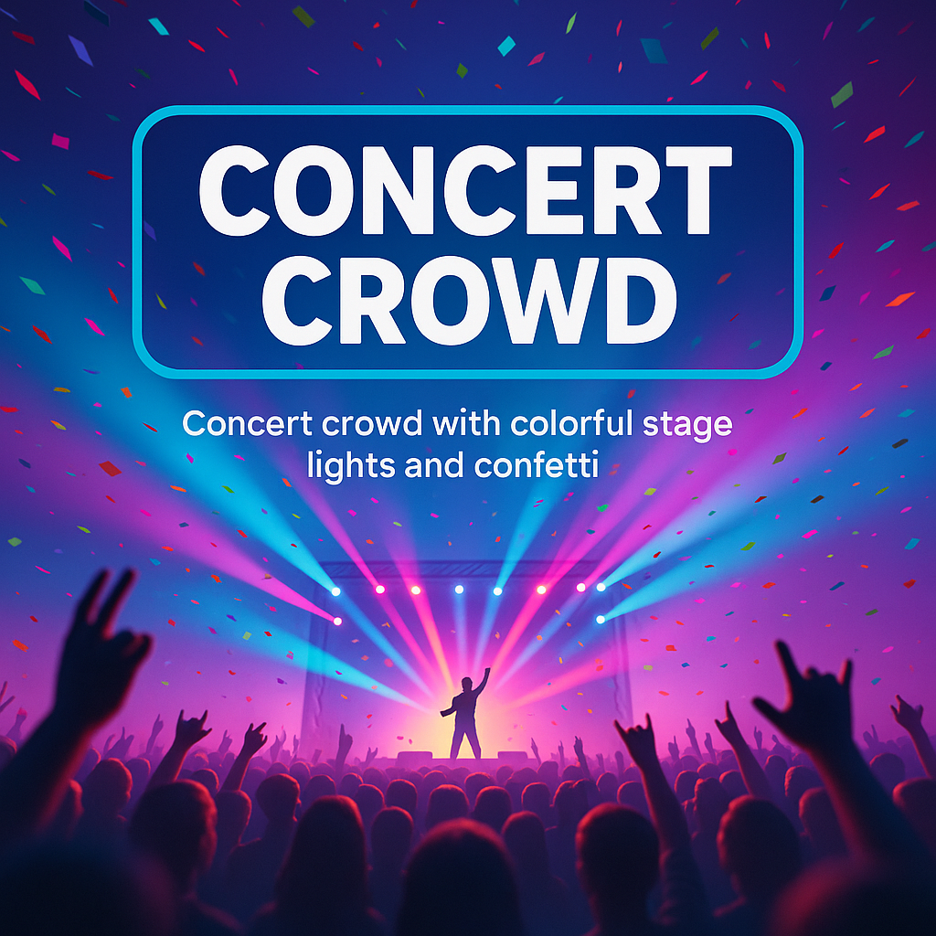 /Collection: /by davooda/Type: PNG/This image depicts a lively concert scene featuring a crowd enjoying a performance with vibrant stage lights and confetti. Ideal for promoting music events.