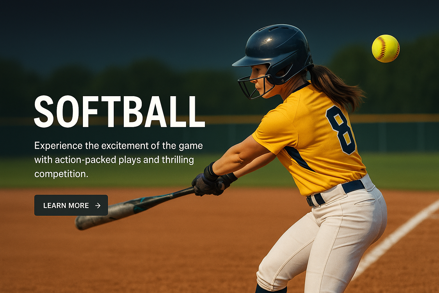 An engaging illustration showcasing a female softball player in action, emphasizing the thrill of the game. The background features a gradient sky, enhancing the vibrant atmosphere.