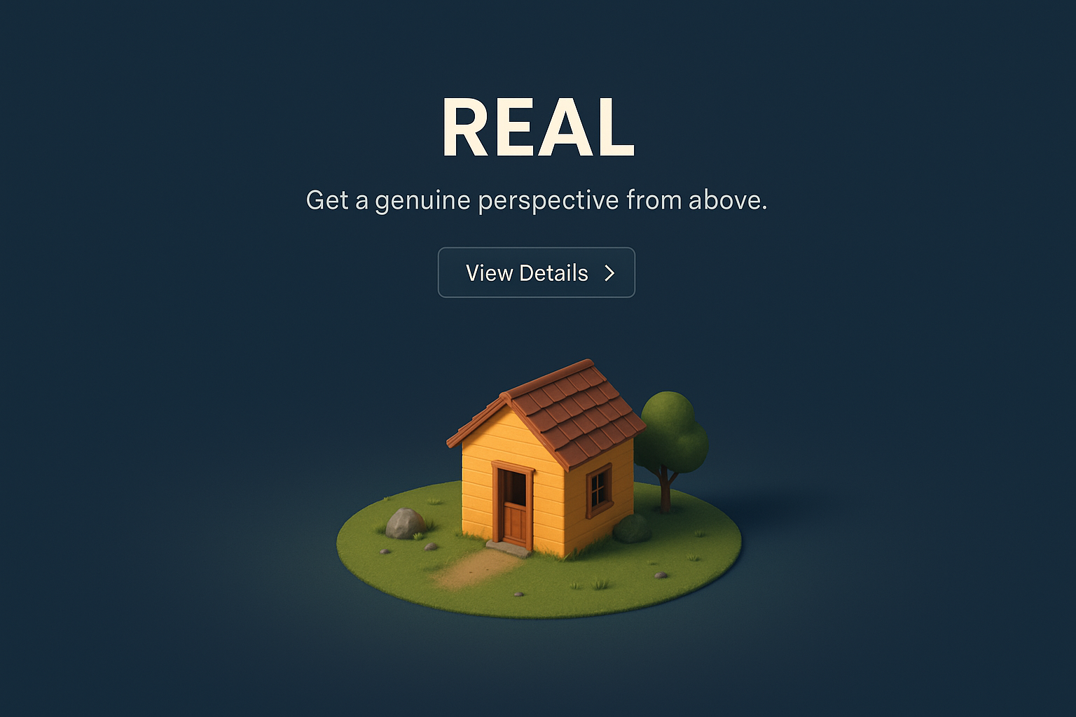 /Collection: /by davooda/Type: PNG/A zoomed-out 3D scene featuring a small house and tree on a minimalist gradient background. The design includes text elements and a call-to-action button, emphasizing realism.
