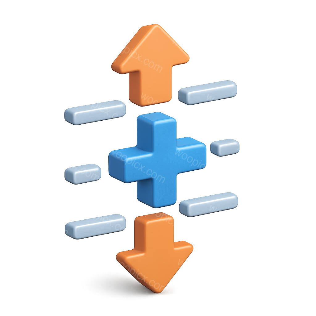 3D Isometric Arrows with Horizontal Lines and Plus Icon - Woopicx
