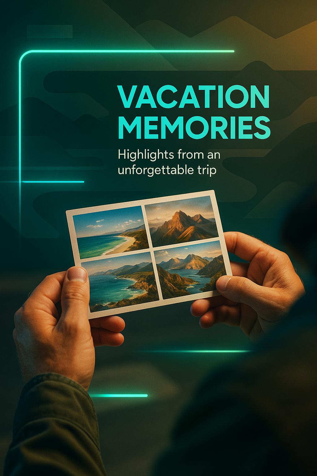 Visually appealing graphic showcasing a photo collage of vacation highlights, designed with modern aesthetics, perfect for travel blogs or social media posts.