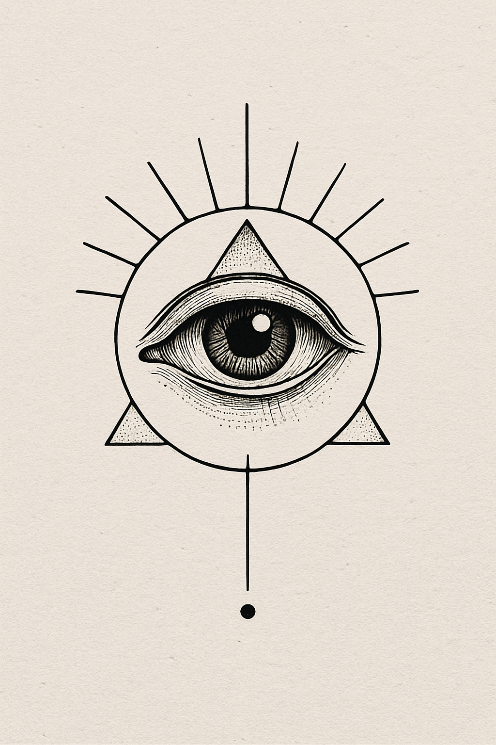 Artistic Representation of an Eye within a Triangle and Sunburst