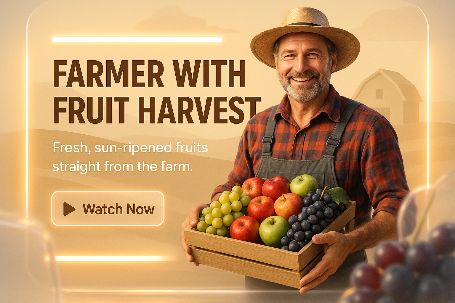 Promotional Image Showcasing Farmer with Fresh Fruit Harvest
