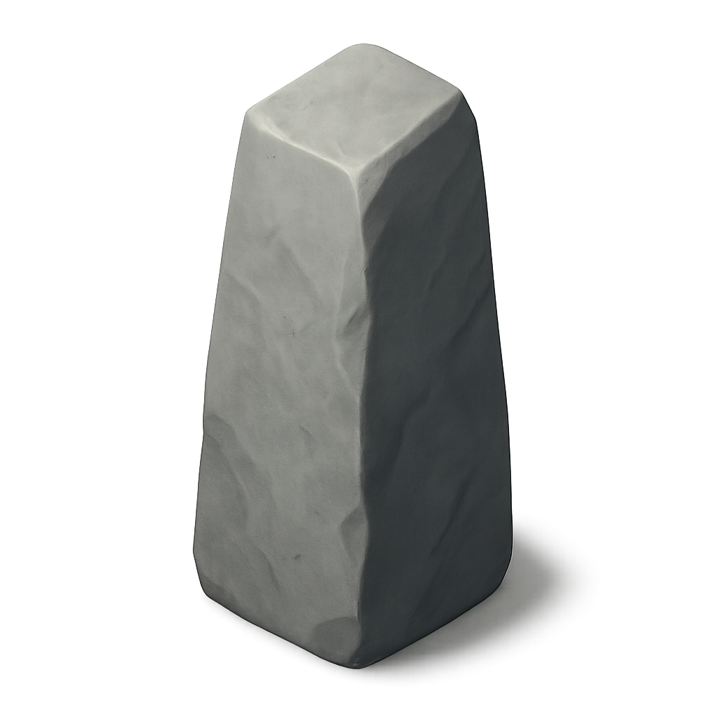 A stylized 3D representation of a monolith stone, showcasing a textured surface and a three-quarter isometric perspective on a transparent background.