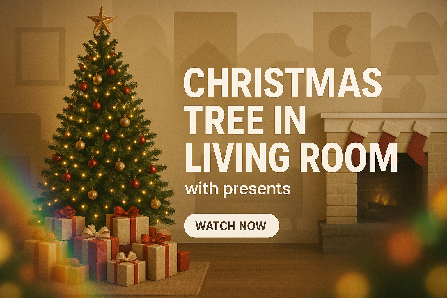 Cozy Living Room with Christmas Tree and Gifts