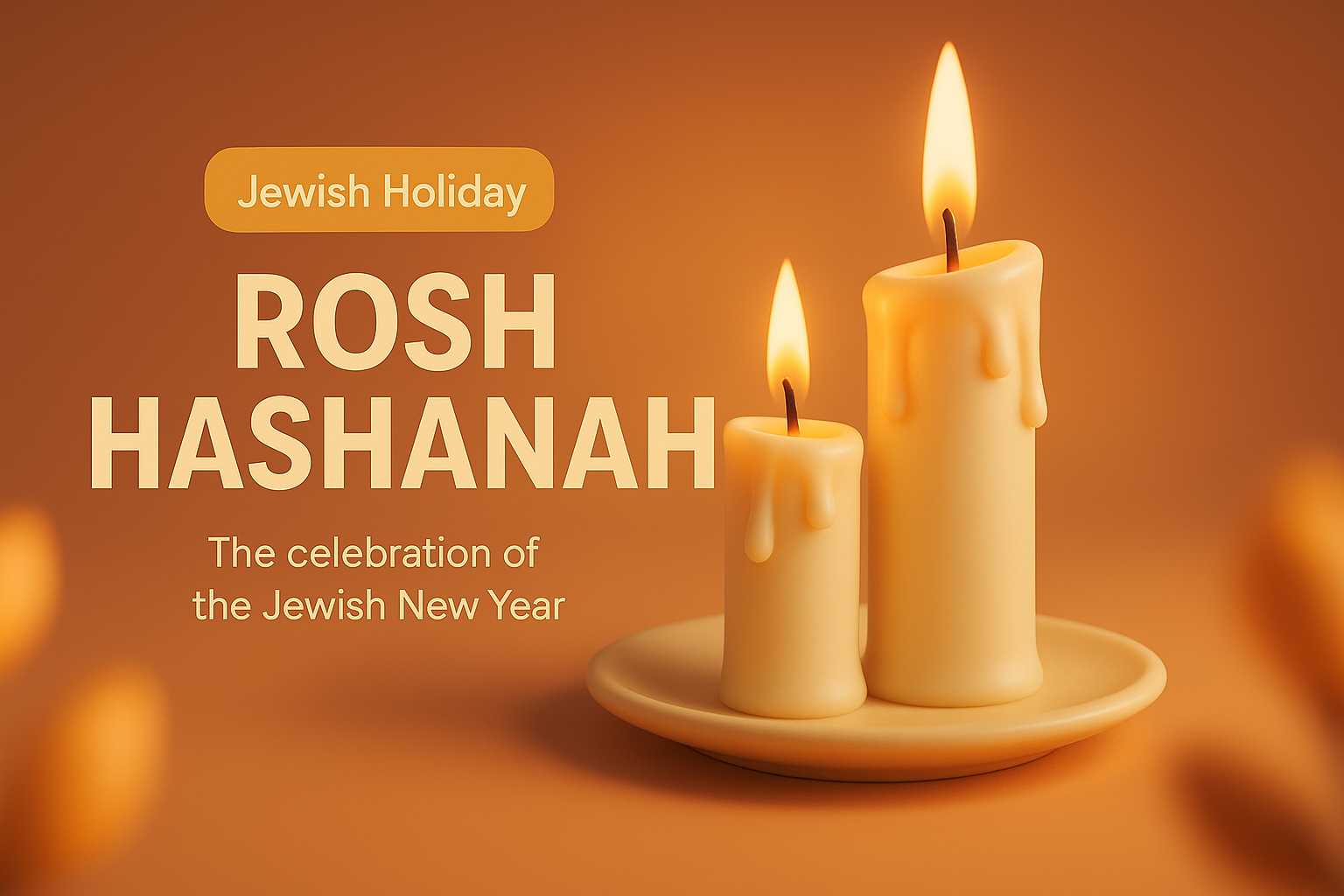 /Collection: /by davooda/Type: PNG/Warm and inviting graphic featuring candles on a plate, symbolizing Rosh Hashanah, suitable for holiday promotions or social media posts celebrating the Jewish New Year.