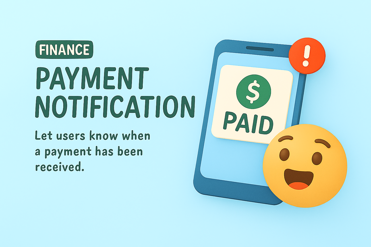 /Collection: /by davooda/Type: PNG/Vibrant digital illustration showcasing a payment notification concept. Ideal for finance apps, this design features a smartphone with a cheerful emoji, enhancing user engagement in mobile notifications.