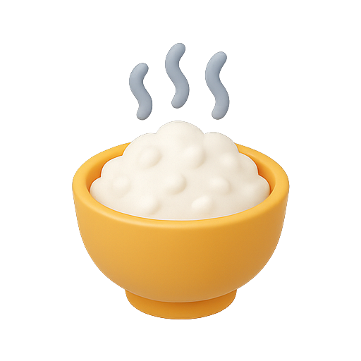 A digital illustration of a yellow bowl filled with steaming white rice, representing food and cuisine. Ideal for social media, messaging, and culinary-themed content.