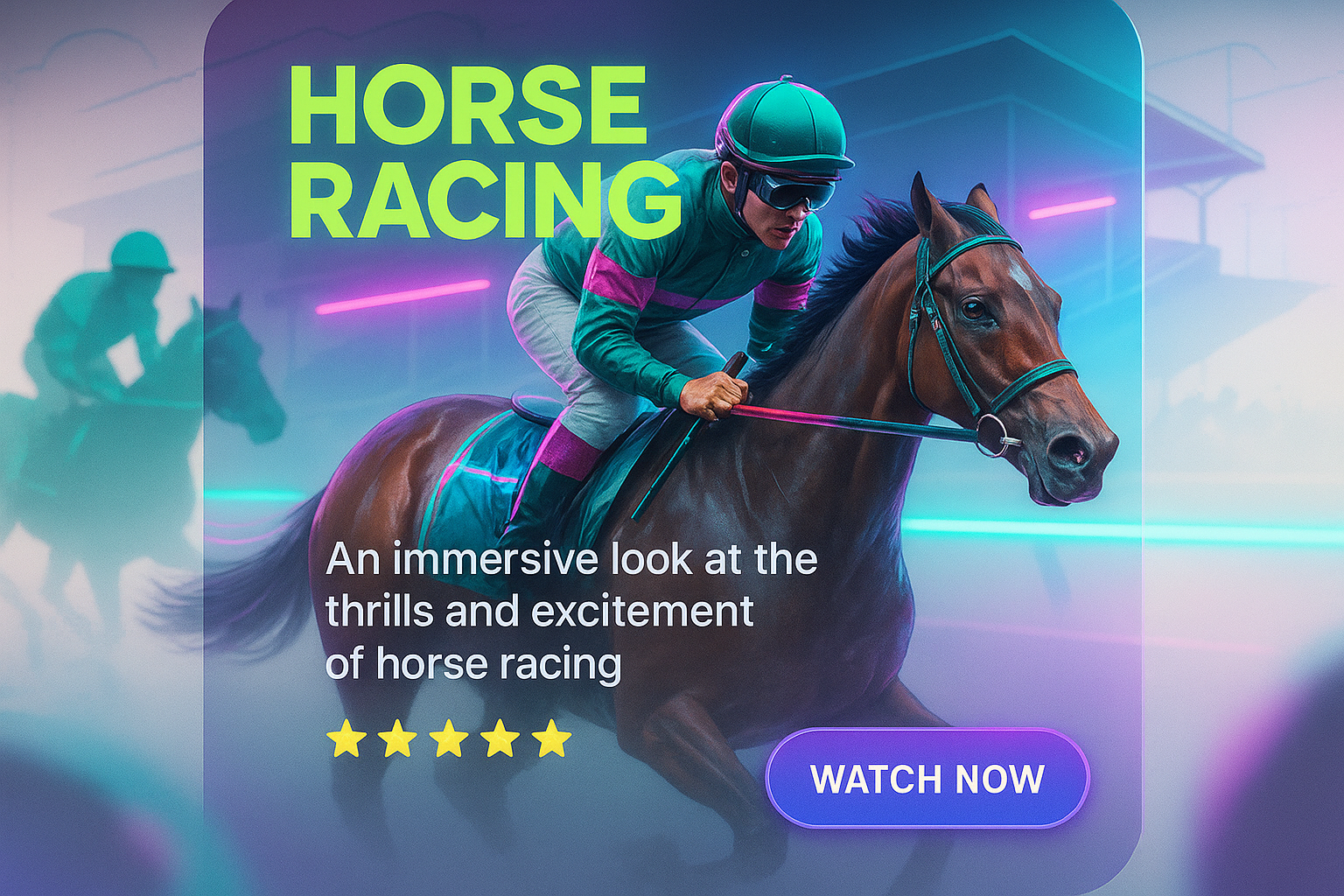 Dynamic Horse Racing Promotional Graphic with Neon Effects