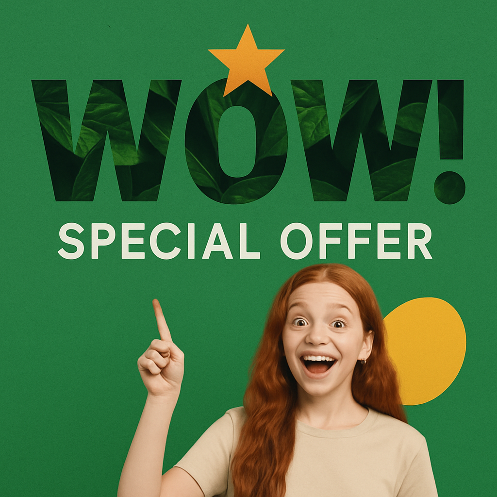 Vibrant promotional graphic showcasing a special offer with a playful design. Ideal for social media marketing aimed at attracting attention.