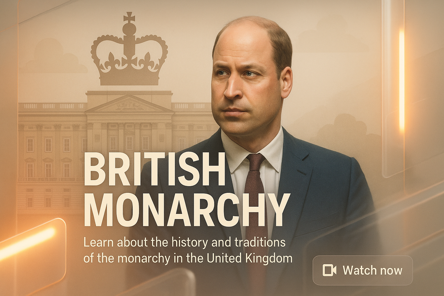 /Collection: /by davooda/Type: PNG/Engaging promotional banner for a documentary on the British monarchy, featuring a prominent figure and modern design elements, aimed at viewers interested in history.