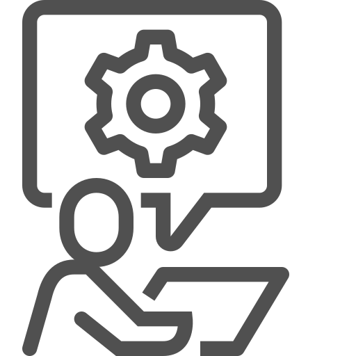 outline simple icon: cogwheel, engineering, people, planning, professional