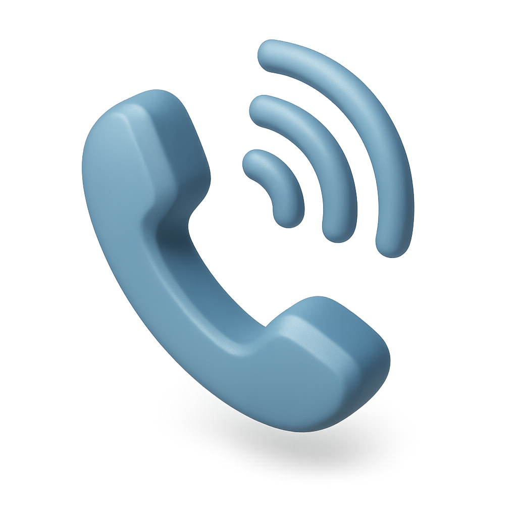 A stylized 3D phone icon depicted in a three-quarter view, featuring a smooth blue finish and signal waves emanating from it. The transparent background enhances its modern design.