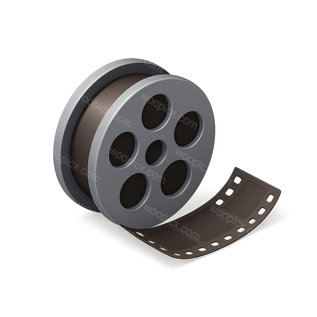 /Premium/Collection: /by davooda/Type: PNG/A 3D film reel icon featuring an exposed film strip. The reel is designed in a three-quarter view with a smooth, metallic finish, creating a volumetric effect against a subtle background.