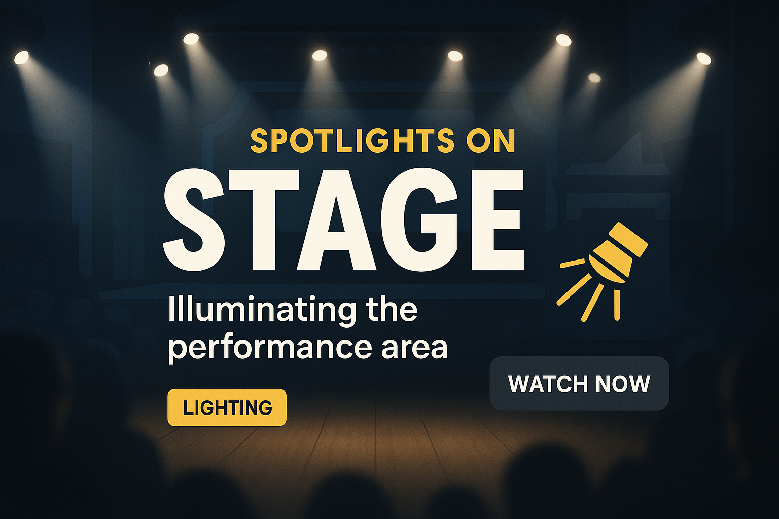 Engaging promotional graphic featuring spotlights on a stage, highlighting the performance area. Ideal for event marketing or creative showcases.