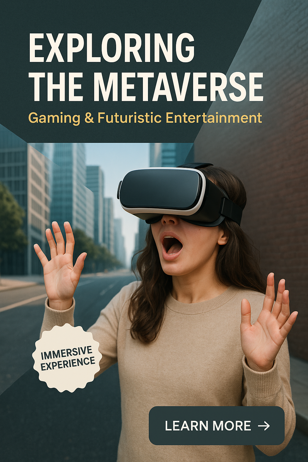 /Collection: /by davooda/Type: PNG/A young woman, amazed by her VR headset, explores a vibrant virtual world. The scene captures the excitement of gaming and futuristic entertainment, set against a modern urban backdrop.