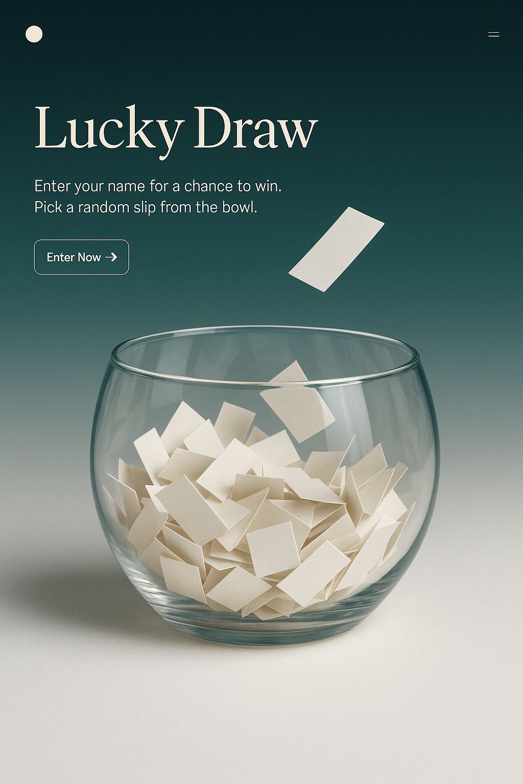 A stylish glass bowl filled with slips of paper, set against a gradient background. The bowl is the focal point, inviting participation in a lucky draw.