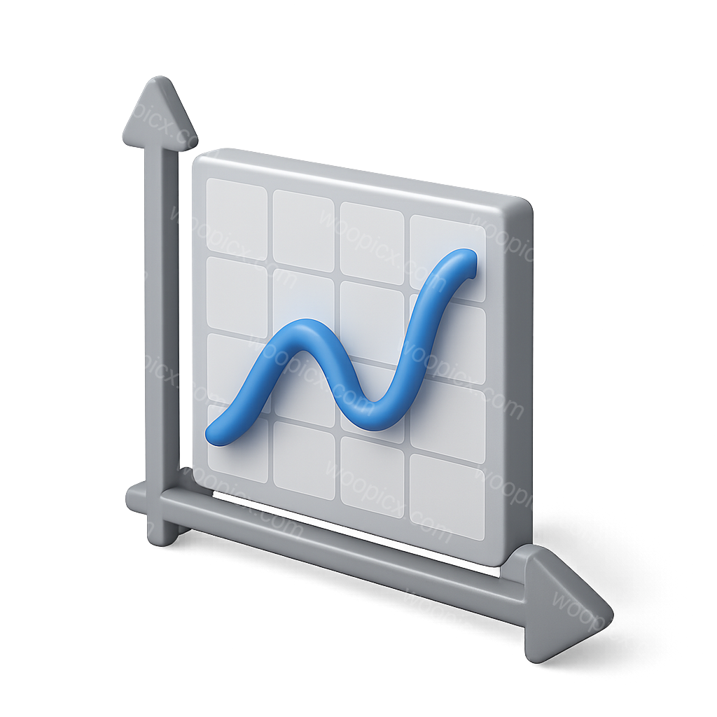 A 3D icon depicting a mathematical graph with a blue curve on a grid background. The graph has a three-quarter view, enhancing its volumetric appearance.