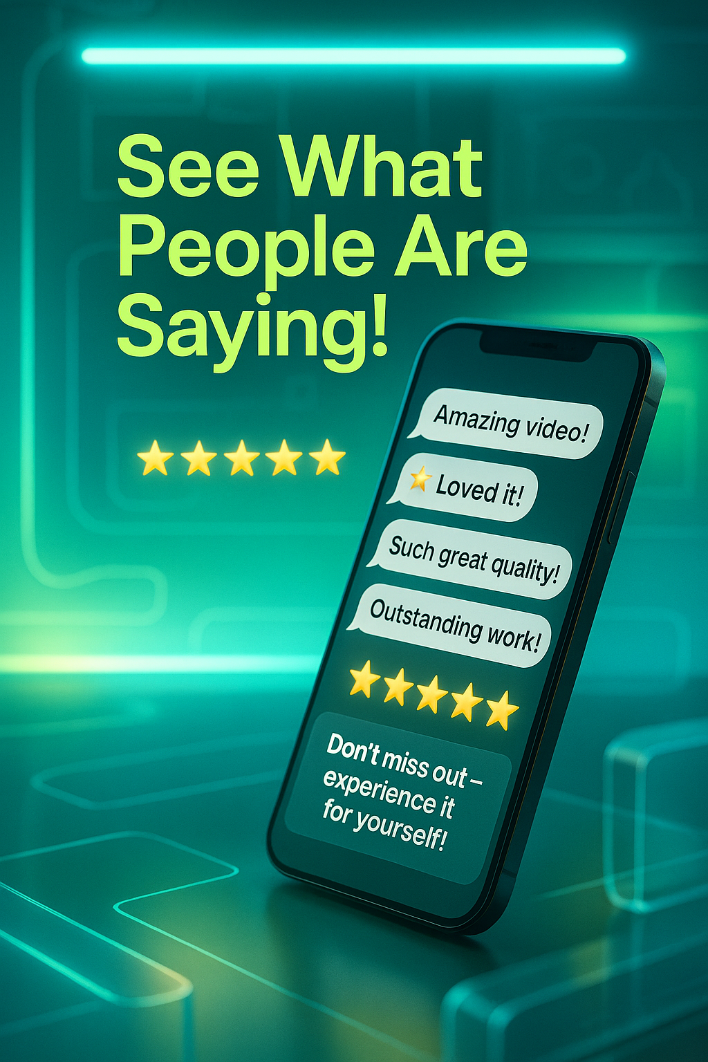 Testimonial Graphic Featuring Video Playback with Positive Reviews