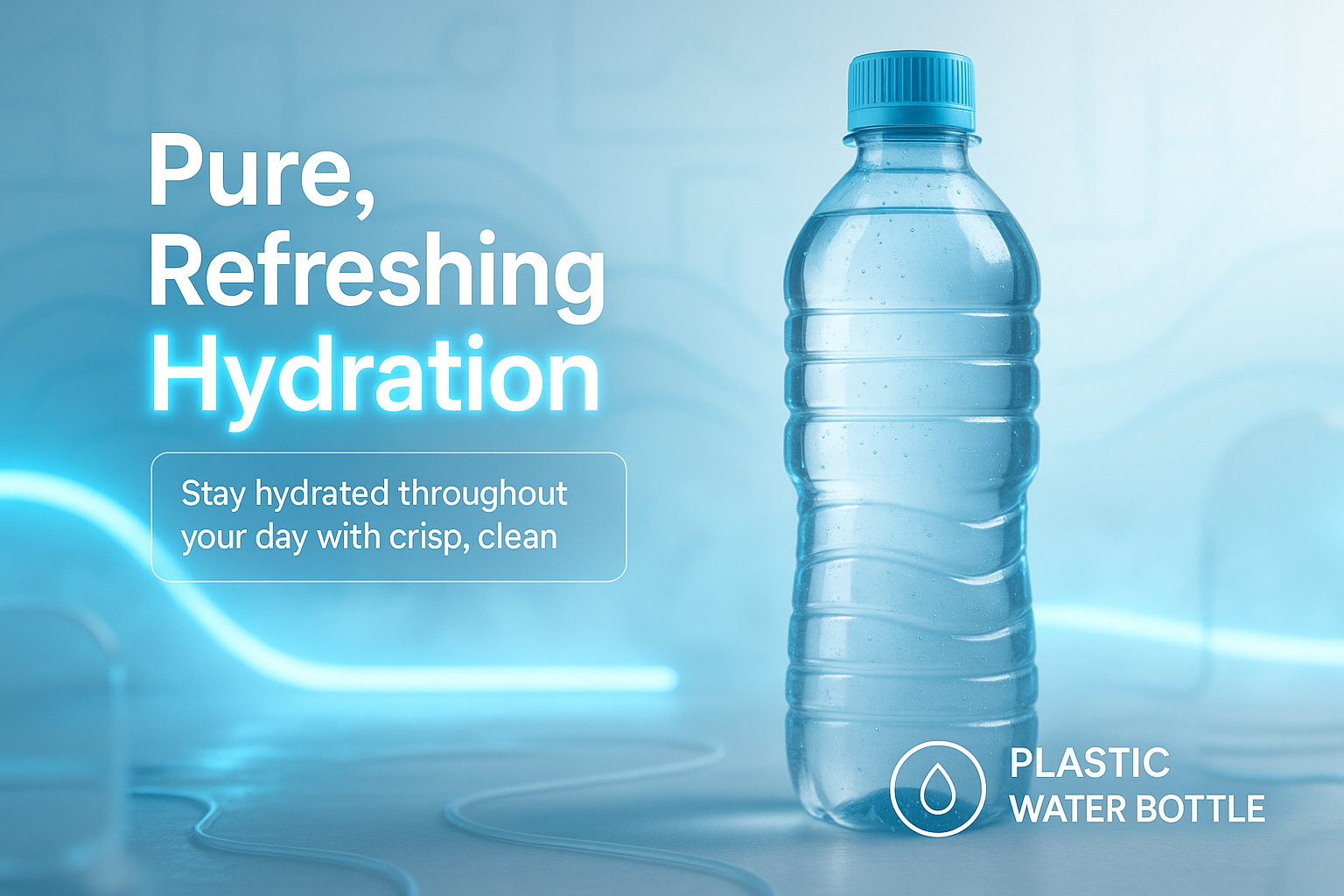 Promotional Image of a Plastic Water Bottle with Hydration Theme