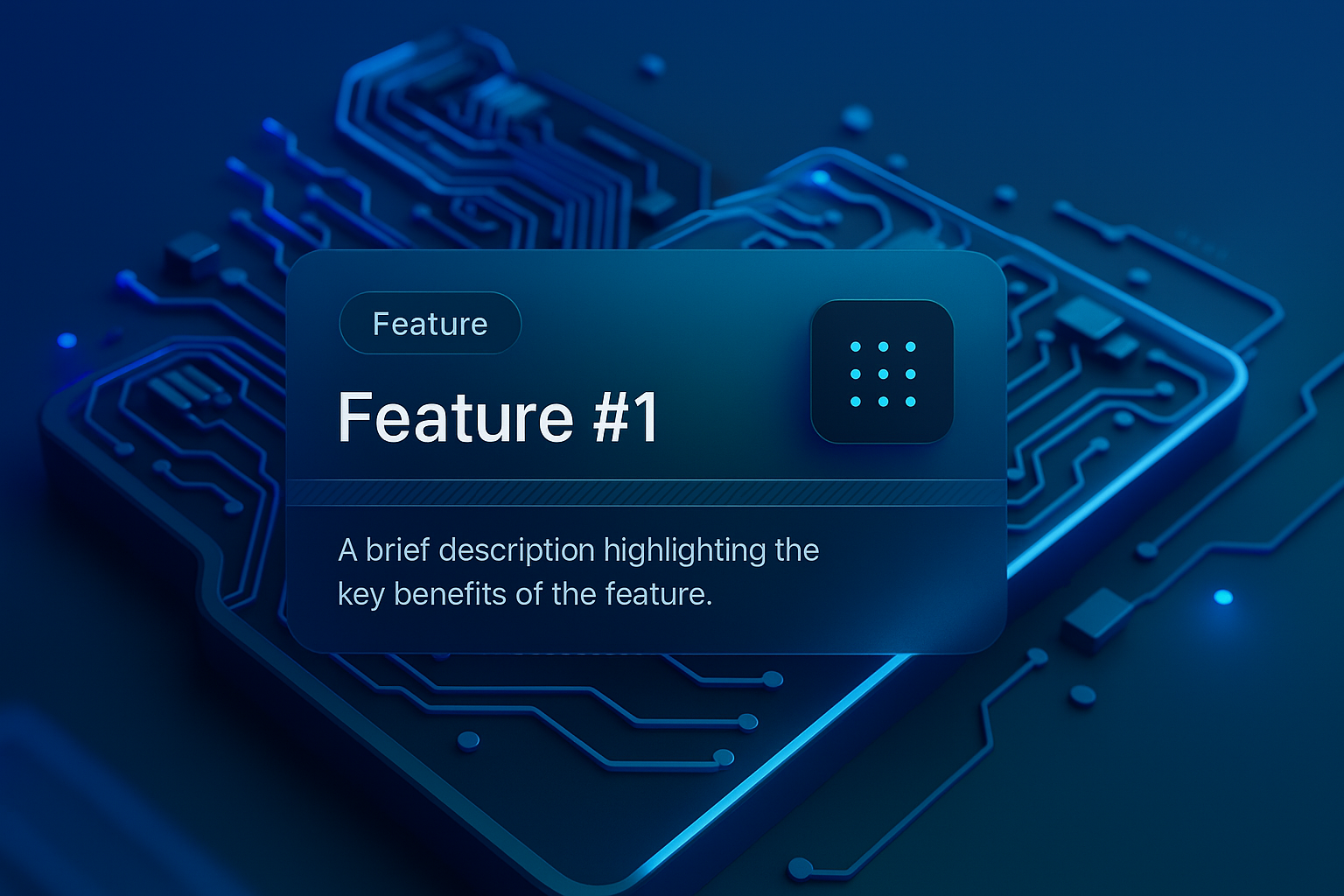 /Collection: /by davooda/Type: PNG/A visually striking abstract circuit board design featuring a highlighted feature box. The background showcases a smooth gradient with vibrant blue tones, enhancing the modern tech aesthetic.