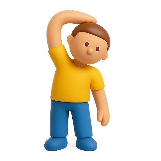 /Collection: /by davooda/Type: PNG/A vibrant 3D illustration of a cartoon character in a stretching pose, ideal for wellness or fitness-related content. The character features a friendly expression, making it appealing for educational or promotional materials.