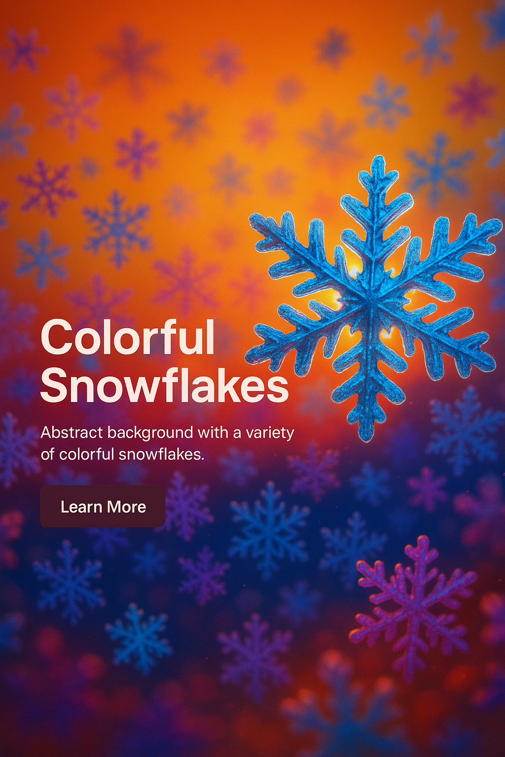 A vibrant graphic featuring colorful snowflakes against an abstract background. Ideal for winter promotions or seasonal themes in digital marketing.